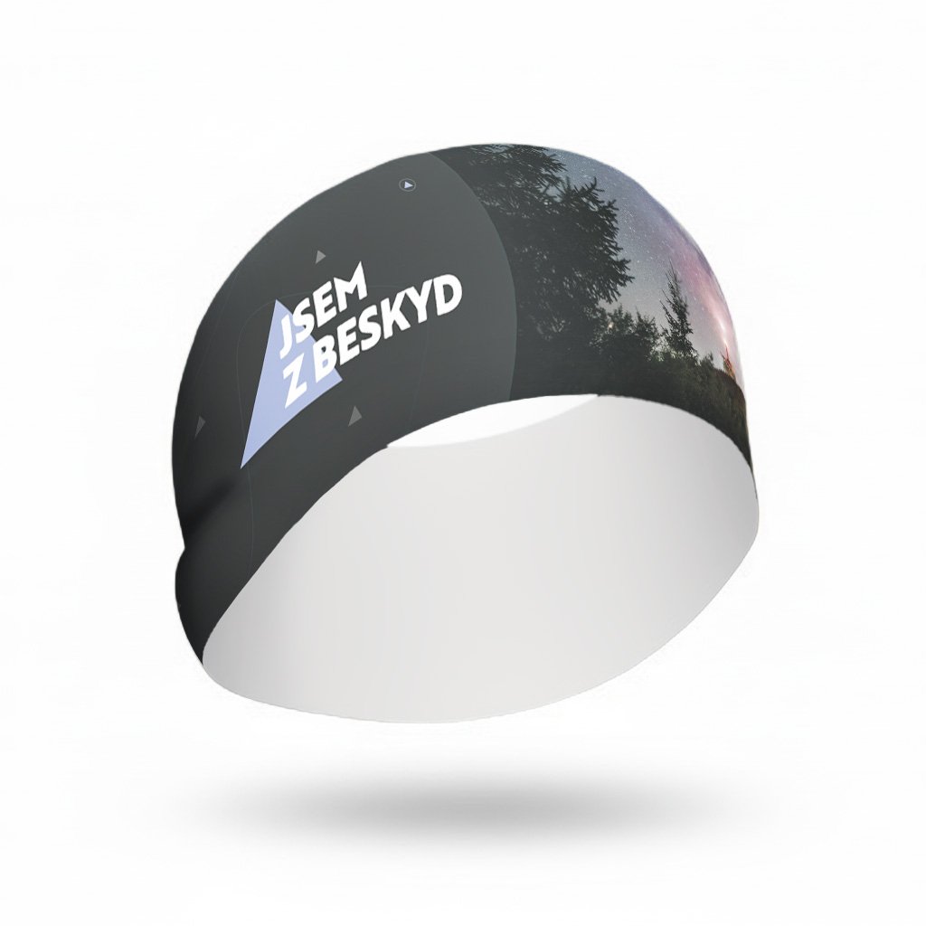 Nový design zimní zateplené černé čelenky Jsem z Beskyd s motivem noci na Lysé hoře z originální beskydské fotografie Petra Lukeše. Zimní zateplená čelenka je vyrobena v České republice ze špičkového funkčního materiálu Dolomiti. Díky tomu si ji oblíbí jak vrcholoví sportovci, tak turisté a milovníci zimních procházek.