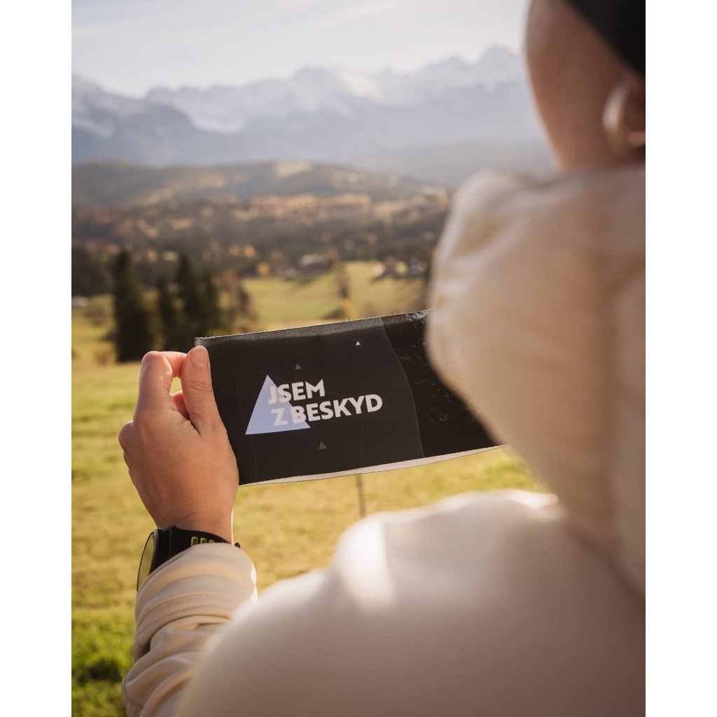 Nový design letní-přechodové černé čelenky Jsem z Beskyd s motivem noci na Lysé hoře z originální beskydské fotografie Petra Lukeše. Letní-přechodová čelenka je vyrobena v České republice ze špičkového funkčního materiálu Instinkt. Díky tomu si ji oblíbí jak vrcholoví sportovci, tak turisté a milovníci procházek.