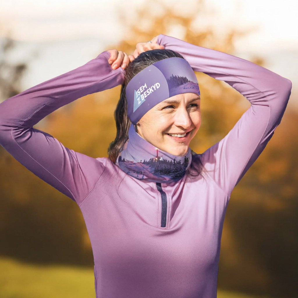 Funkční čelenka Jsem z Beskyd – noční fialová Lysá hora – letní-přechodová