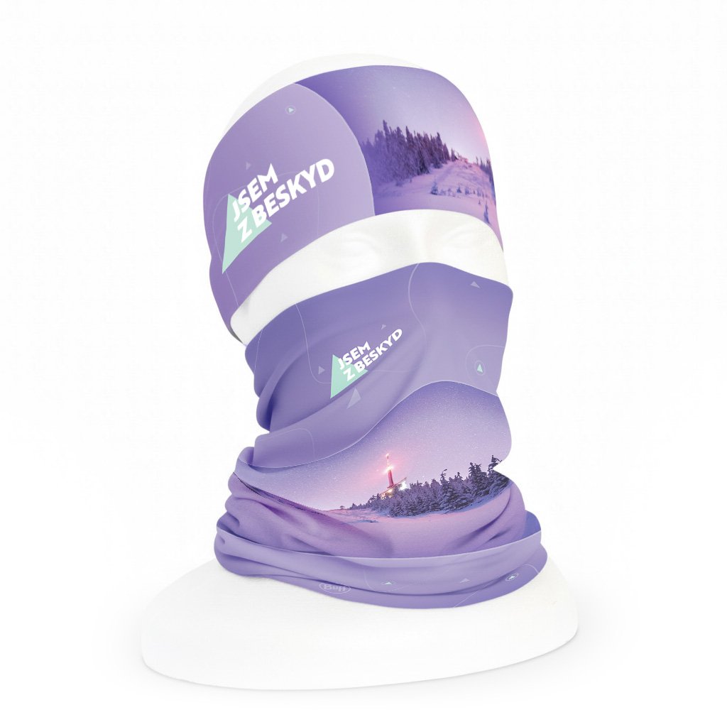Sada Jsem z Beskyd čelenka + šátek BUFF – noční fialová Lysá hora